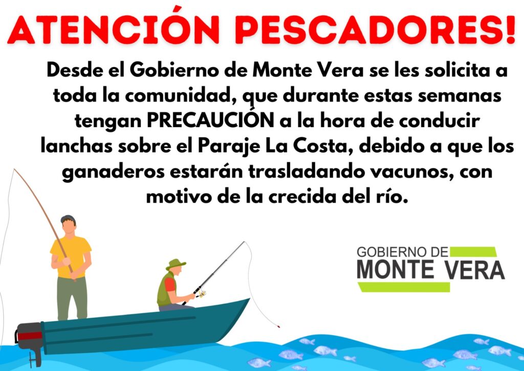 Este jueves, desde la comuna de Monte Vera emitieron un comunicado donde se solicita precaución a quienes transiten en lanchas en el paraje La Costa. El pedido se debe a que los ganaderos de la zona de islas estarán trasladando sus vacunos, debido a la crecida que se espera.