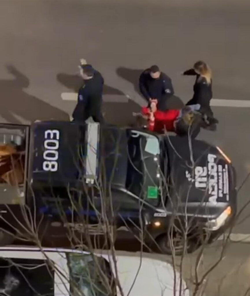 En la versión policial se asegura que la agresora no acató lo dispuesto por los uniformados y continuó arriba de la camioneta, por lo que los agentes debieron retirarla del coche por la fuerza y luego esposarla. Seguidamente, la subieron al móvil y la trasladaron a la comisaria 3ra de barrio Candioti sur.