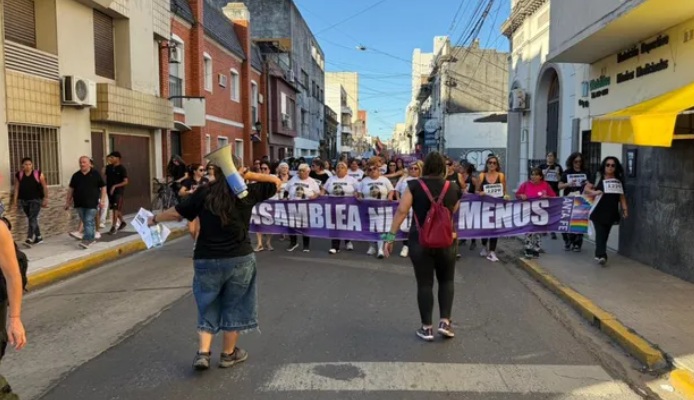 La columna avanza al grito de consignas históricas como “El Estado es responsable” y “Ni una menos”, reforzando el reclamo por políticas públicas de prevención, protección y justicia para las víctimas.