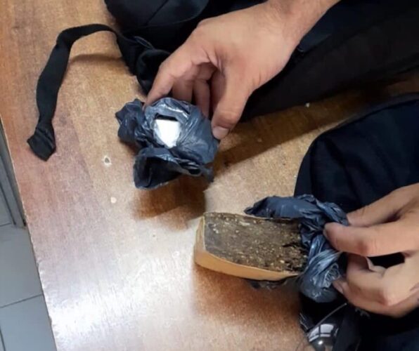 En la requisa, los agentes hallaron en su mochila una botella de cartón de un reconocido jugo con aparentemente drogas.
