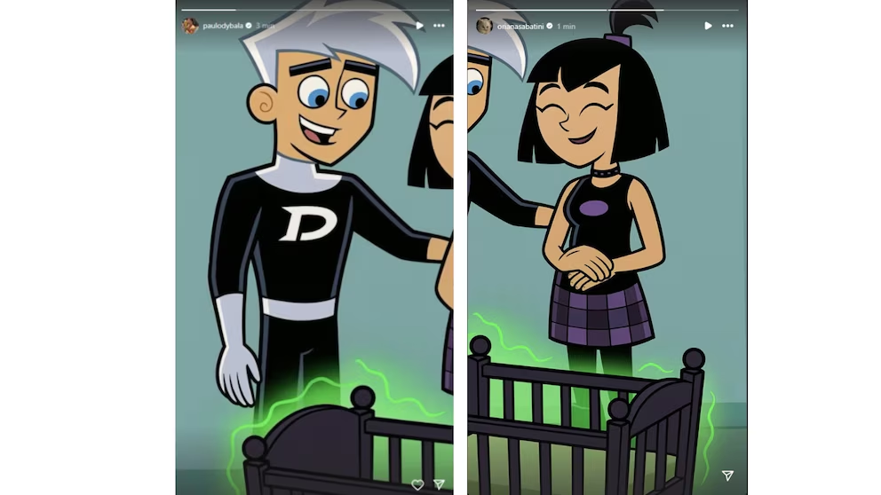 Esta vez, la pareja posteó dos imágenes —una en la cuenta de Paulo, otra en la de Oriana — en las que sus personajes animados aparecen juntos, sonrientes y abrazados, frente a una cuna. Oriana, en el rol del dibujo animado, se muestra con las manos sobre el vientre, sugiriendo la llegada del bebé. La escena, reforzada por el contorno verde brillante típico del universo de Danny Phantom, transmite ternura y hace guiño al inicio de su historia de amor.