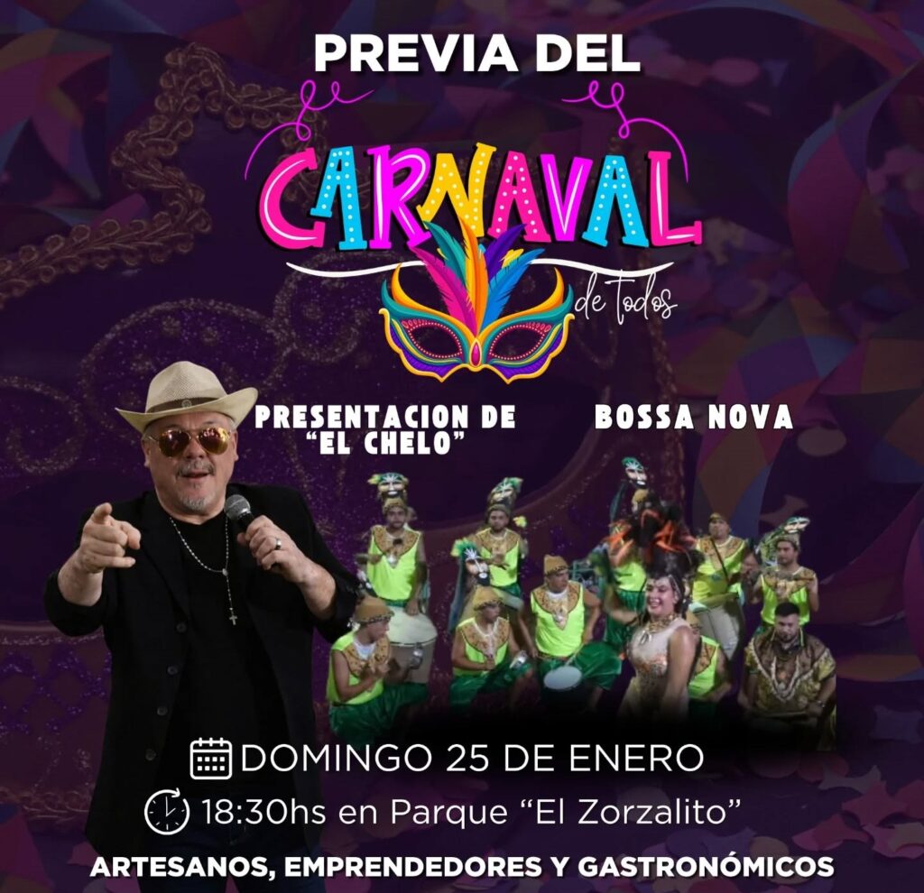 Mañana, domingo 25 de enero a partir de las 18.30, en el Parque El Zorzalito de Laguna Paiva tendrá lugar la “Previa del Carnaval de Todos”, un evento pensado para celebrar la cultura, el talento local y el espíritu emprendedor de la ciudad.