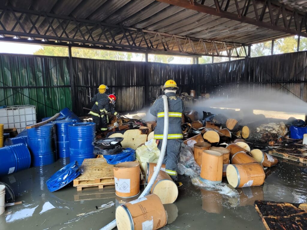 Los bomberos Voluntarios de Recreo trabajaron en enfriar el sitio y hacer un control de lo ocurrido. El fuego no se generó en un sector con químicos y no afectó al exterior comentaros desde la firma a RADIO 104.5.