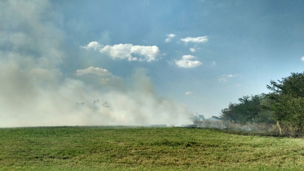 El humo de las quemas de pastizales afectaban cerca del mediodía de este martes a un sector de la Ruta Nacional 11, a la altura de la localidad de Recreo.