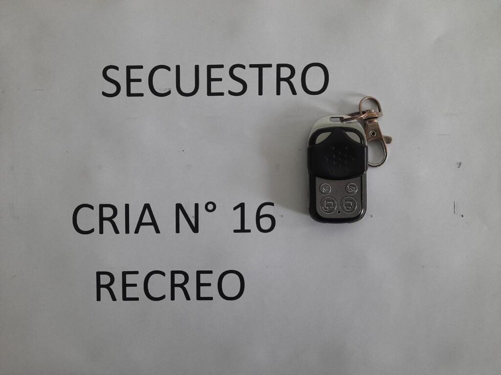 En el vehículo en el que se trasladaban, un Toyota Allion, color blanco se encontró debajo del asiento del conductor un tipo llavero de color negro y gris plata con cuatro botones. Estaba tapado por una tapa corrediza de color negra con la inscripción en la parte trasera “UNYSYSTEM”.