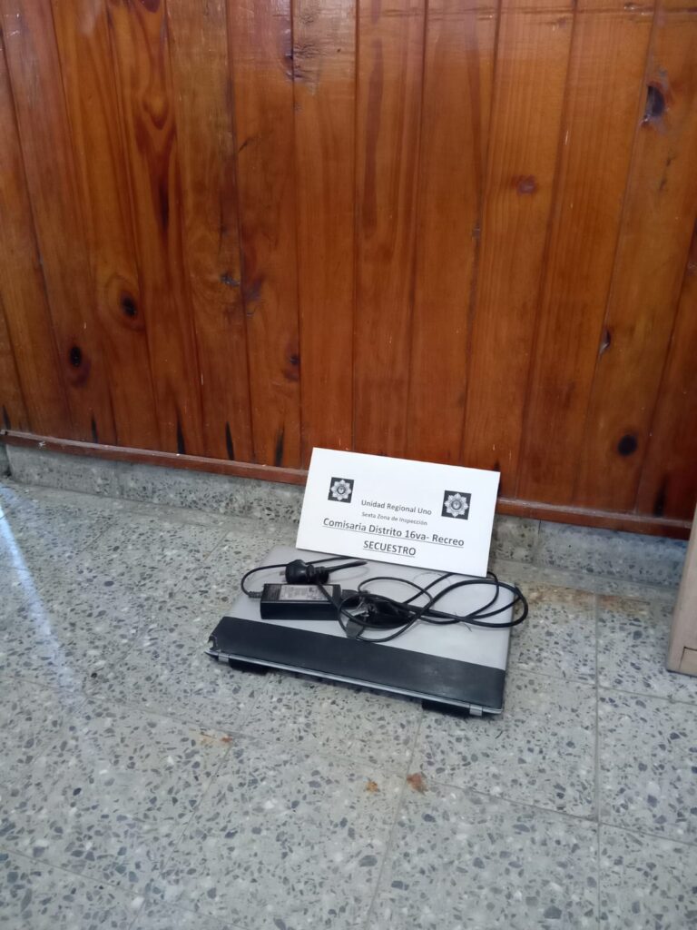 La mujer se acercó a la comisaría N°16 de Recreo y se organiza una entrega controlada. En un auto particular se acercan a el cruce de las calles Alberdi y J.D Solís ( detrás de la empresa Láctea) y se logra observar a una joven de 22 años en bicicleta con la computadora.