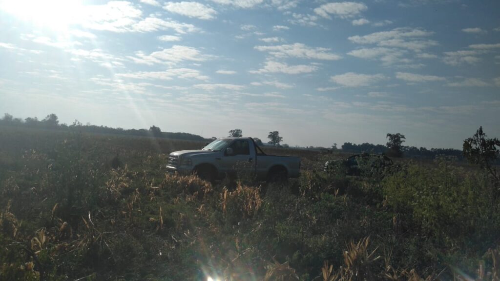 La camioneta se encontraba en el interior de un campo ubicado a la altura del km 482 de ruta 1V11, altura ex Liceo, a 500 metros al Este.