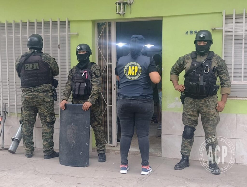 Personal de la Agencia de Control Policial realizo sendos allanamientos en la ciudad de Rosario logrando la Detención de un personal policial y de su hijo en relación a la causa que investiga el Fiscal de Delitos con armas de fuego a cargo del Dr. Pablo Socca y que tendrían su raíz en la detención ocurrida el 26/05/22 respecto a Mauro Javier Gerez, «jefe de los Sicarios de una célula de Los Monos» asentada en barrio Ludueña de la ciudad de Rosario.