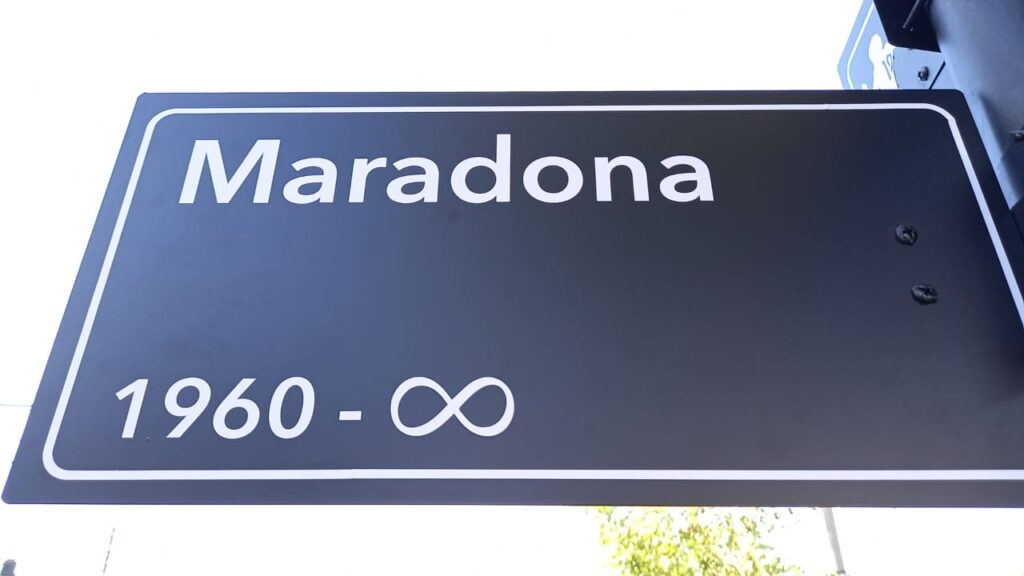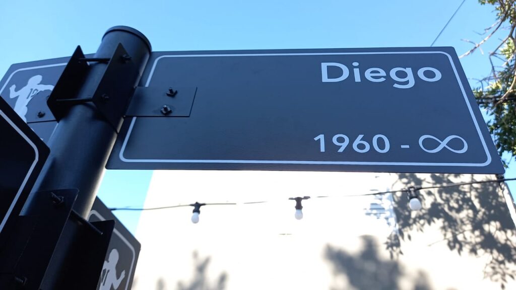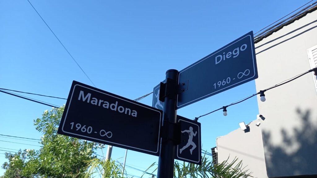 Desde hace unos tres días, quienes crucen por calles Mitre y Calcena de barrio La Loma de Santa Fe podrán ver en la esquina los carteles de nomenclatura Diego y Maradona.