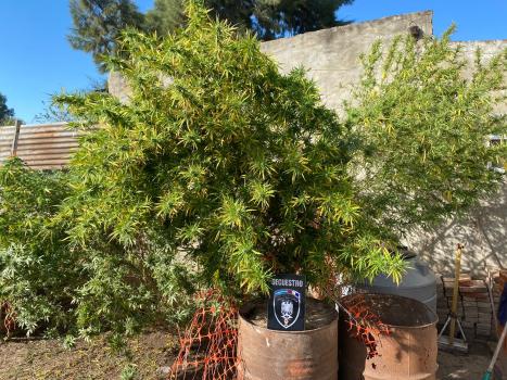 La policía comenzó la persecución y lo detiene en el patio trasero del inmueble donde observaron que tiene plantas de marihuana de considerables alturas.