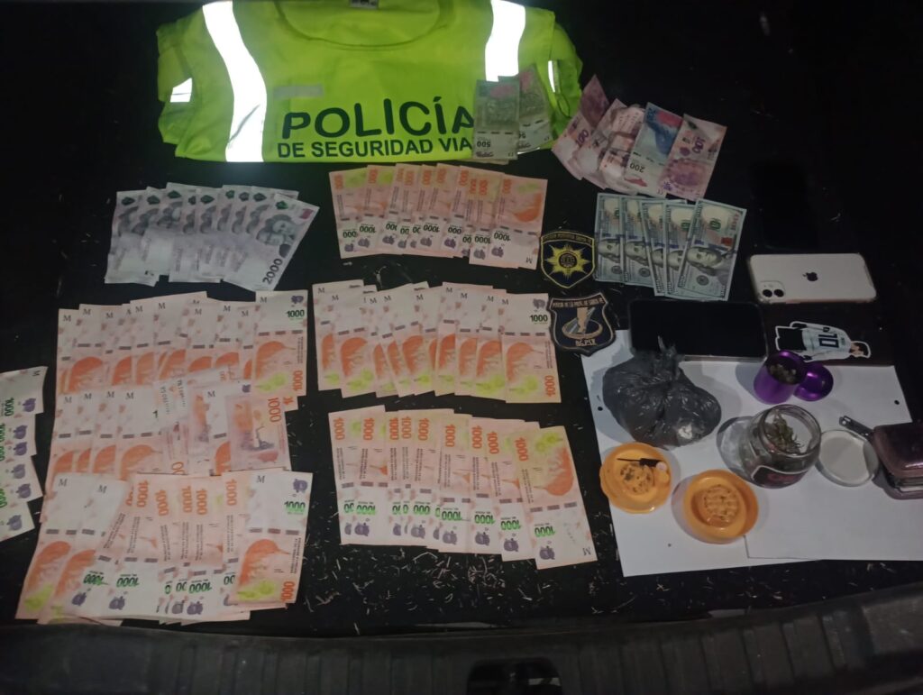 En el procedimiento incautaron cocaína, cannabis y dólares a un hombre identificado como Jonathan Maldonado de 33 años oriundo de Santa Fe capital y Nadia Basoalto de 35 años con domicilio en Escobar, Buenos Aires.