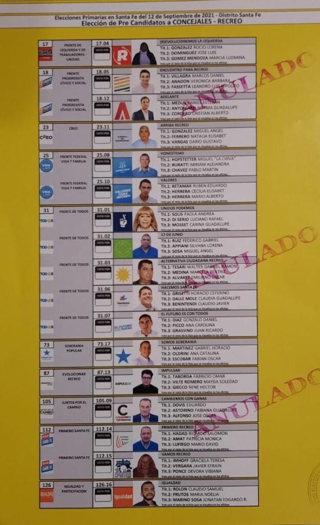 Las 17 listas a concejales y las 4 a intendente están impresas en las boletas provisorias que luego se imprimirán y se entregarán el 12 de septiembre a cada uno de los votantes que irán a los establecimientos educativos habilitados para tal fin.