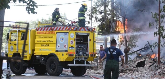 Además, se derrumbó una pared lateral que se encuentra sobre Gobernador Freyre que casi golpea contra una estación transformadora de la EPE; empresa que interrumpió el servicio de energía hasta que los bomberos puedan controlar el foco y auditar los daños ocasionados.