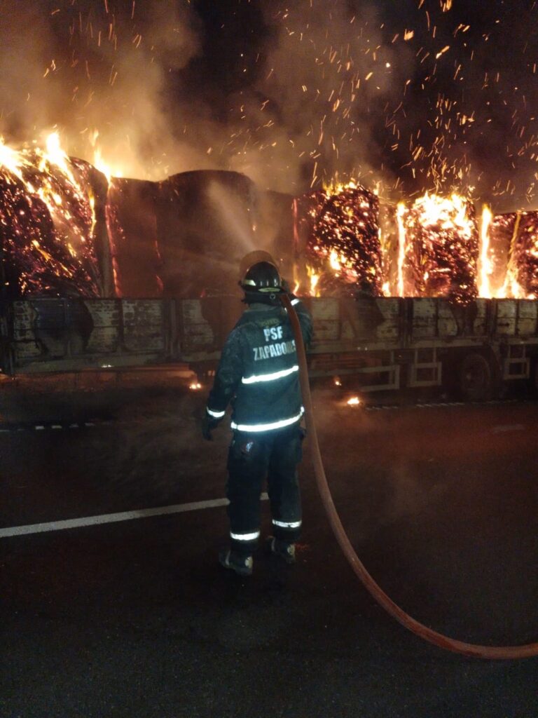 Este jueves por la noche, se prendió fuego un camión en la autopista, Santa Fe-Rosario, jurisdicción de Santo Tomé.