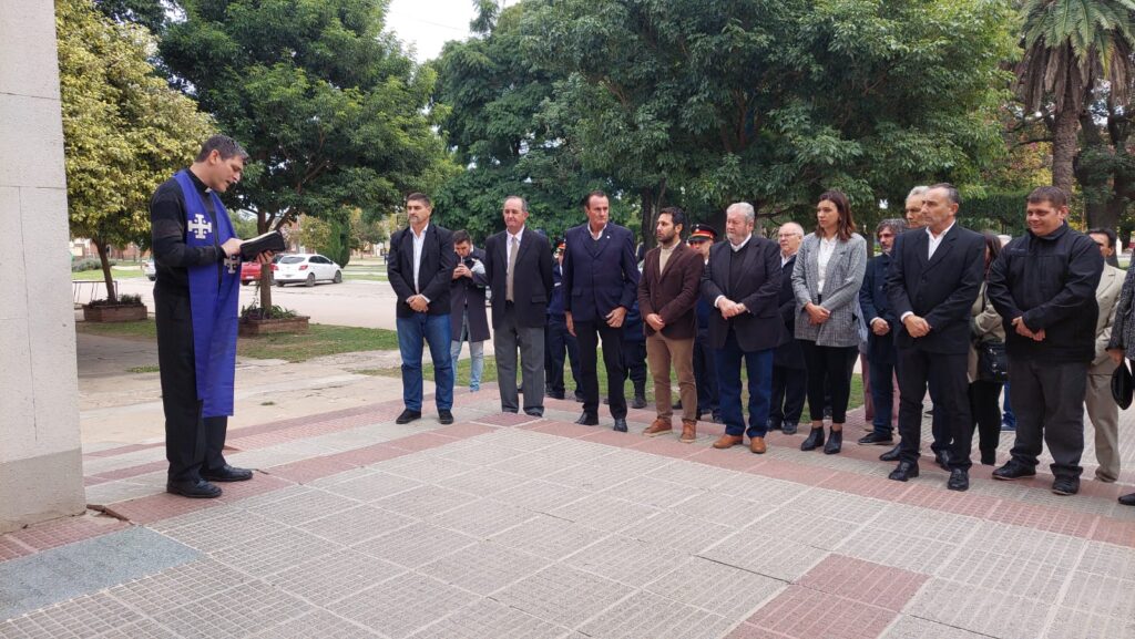 Además, una vez finalizado el acto protocolar, los presentes se dirigieron a la Parroquia San Miguel Arcángel para realizar el depósito de una Ofrenda Floral en honor a los fundadores José Aldao e Ignacio Crespo.