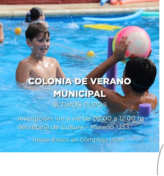 La Municipalidad de Laguna Paiva, a través de sus redes sociales oficiales, comunicó a la población que aún quedan los últimos cupos para la Colonia de Verano Municipal, dirigida a niños y niñas de 3 a 12 años.