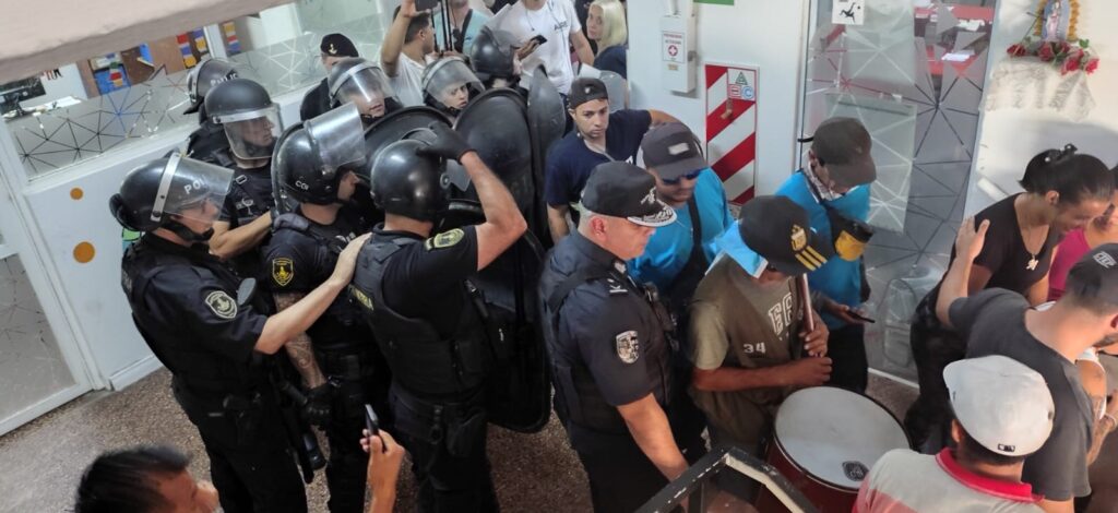 Asimismo, se evalúa iniciar las acciones legales correspondientes frente a la irrupción violenta en una dependencia del Estado provincial, hecho que implicó la privación ilegítima del ingreso y egreso de personas, además de obstaculizar el funcionamiento del organismo.