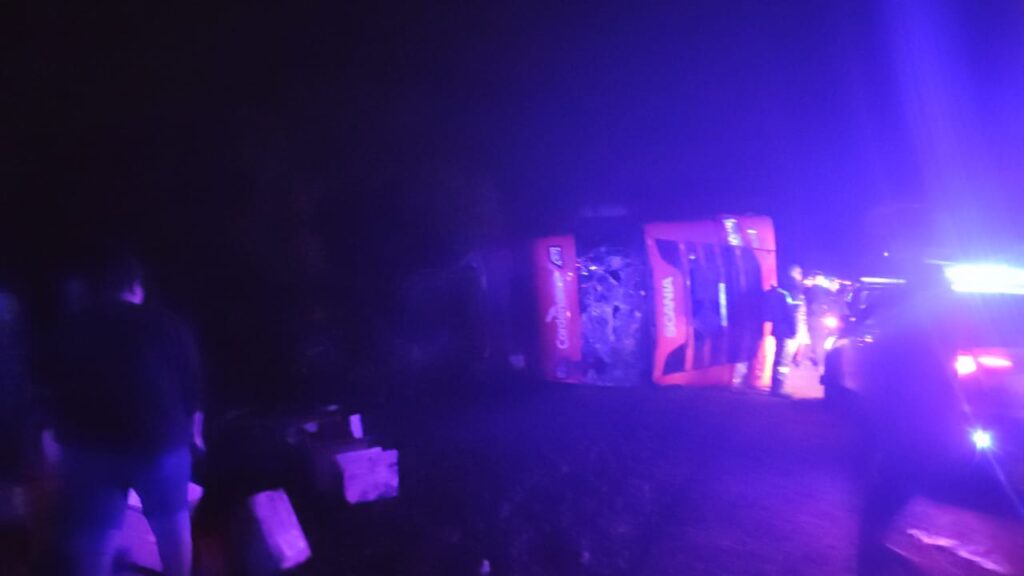 Pasada las 20 horas de hoy un camión semiremolque que transportaba queso mozzarella perdió el control y termino volcando en inmediaciones de paraje de Manucho, sobre ruta provincial N°4.