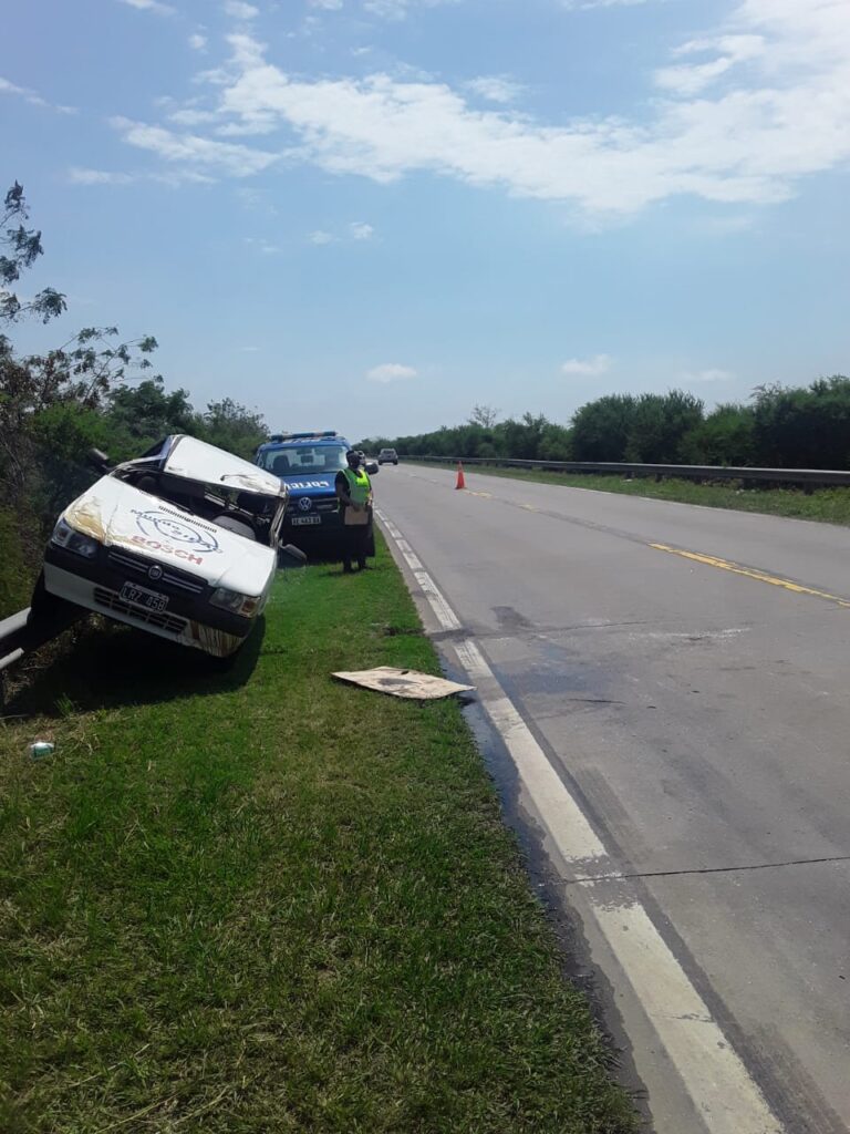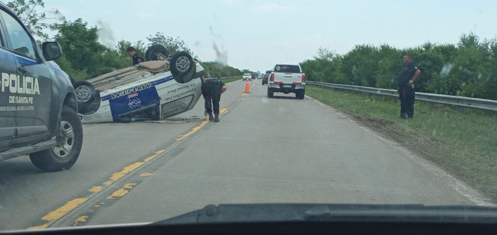 Cerca de las 12 del mediodía, por causas que se desconocen, un automóvil Fiat Uno volcó en circunvalación Oeste en el tramo entre Recreo y Candioti, altura km 487.