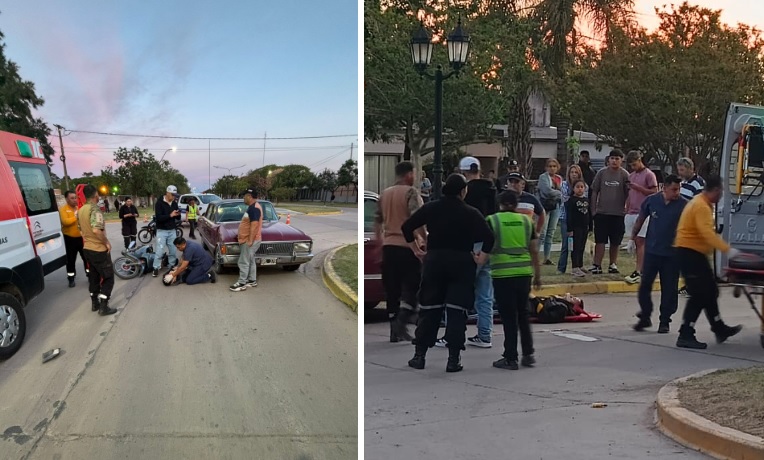 Por causas que se investigan, una motocicleta 110 cc que circulaba por calle Belgrano colisionó con un automóvil que se desplazaba por avenida Mitre en sentido este-oeste.
