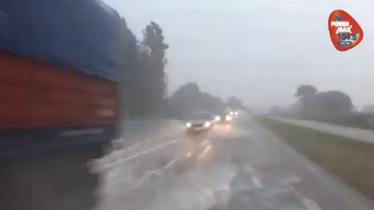 Entre el tramo del Km 491 y el Km 495 hay al menos 15 cms de agua sobre la cinta asfáltica.