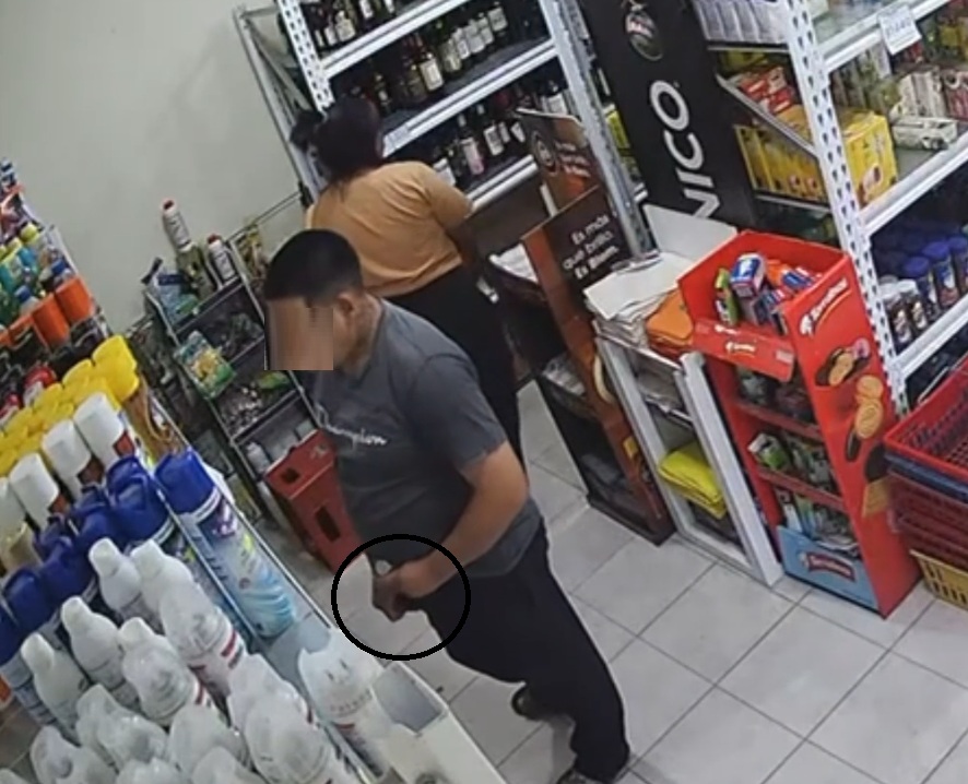 El joven también fue filmado dentro de un minimercado local, de donde tomó productos y los escondió entre sus prendas. Cansados de los reiterados robos, los dueños del comercio decidieron pegar en la puerta una foto del individuo para escracharlo y alertar a la comunidad.