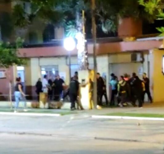 La gresca se volvió masiva entre simpatizantes que buscaban reducir a los atacantes terminando en corridas frente a la Comisaría 16. Uniformados que se acercaron, también fueron atacados por las personas que estaban en el violento episodio.