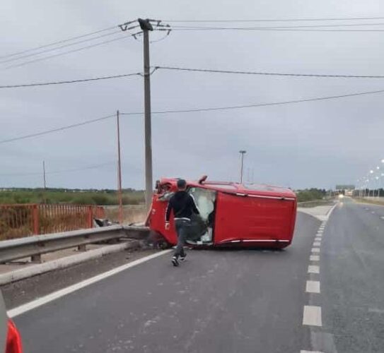 Esta mañana, por razones que se desconocen, el conductor de una camioneta Fiat modelo QUBO perdió el control en el acceso a Autopista Santa Fe/Rosario y terminó volcando.