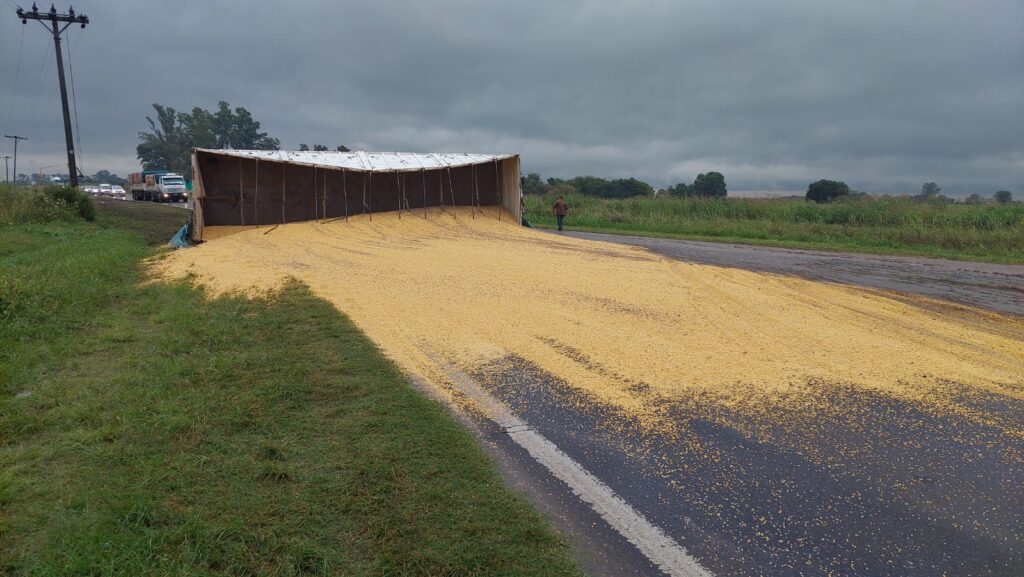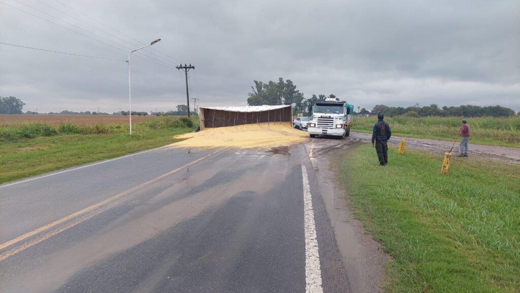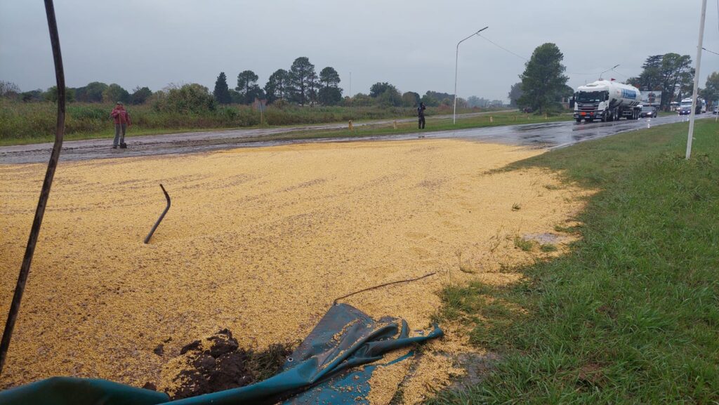 Este viernes por la mañana, un camión con acoplado cargado con soja que circulaba de norte a sur protagonizó un accidente sobre ruta 11, km 495, jurisdicción de Candioti.