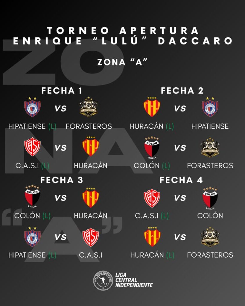 El torneo Apertura llevará por nombre “ Enrique Lulú Daccaro”, en homenaje a quien fuera un histórico presidente de Colón de Emilia. La primera jornada será el domingo 12 de abril.
