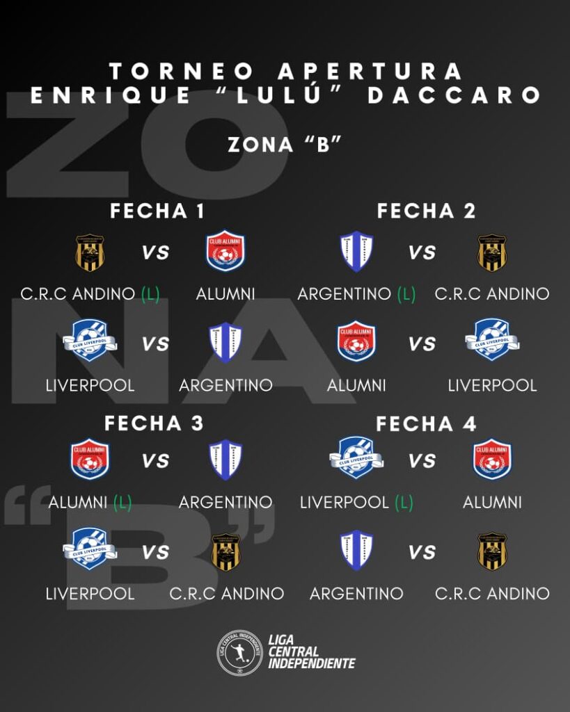 Zona B: Centro Recreativo – Alumni y Liverpool – Argentino.